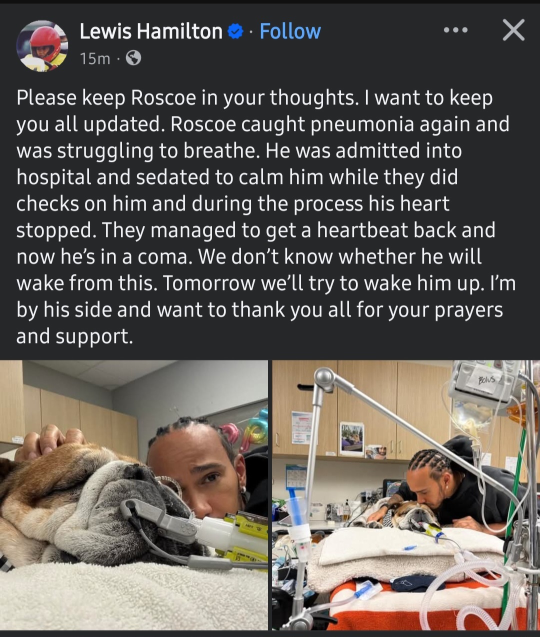 Rich man can’t be sad because poor people have it worse. What a dumb take. Roscoe went everywhere with Lewis and is very popular among his fans, why would he not share such a moment. If you don’t care because “other people have it worse” then read something else.