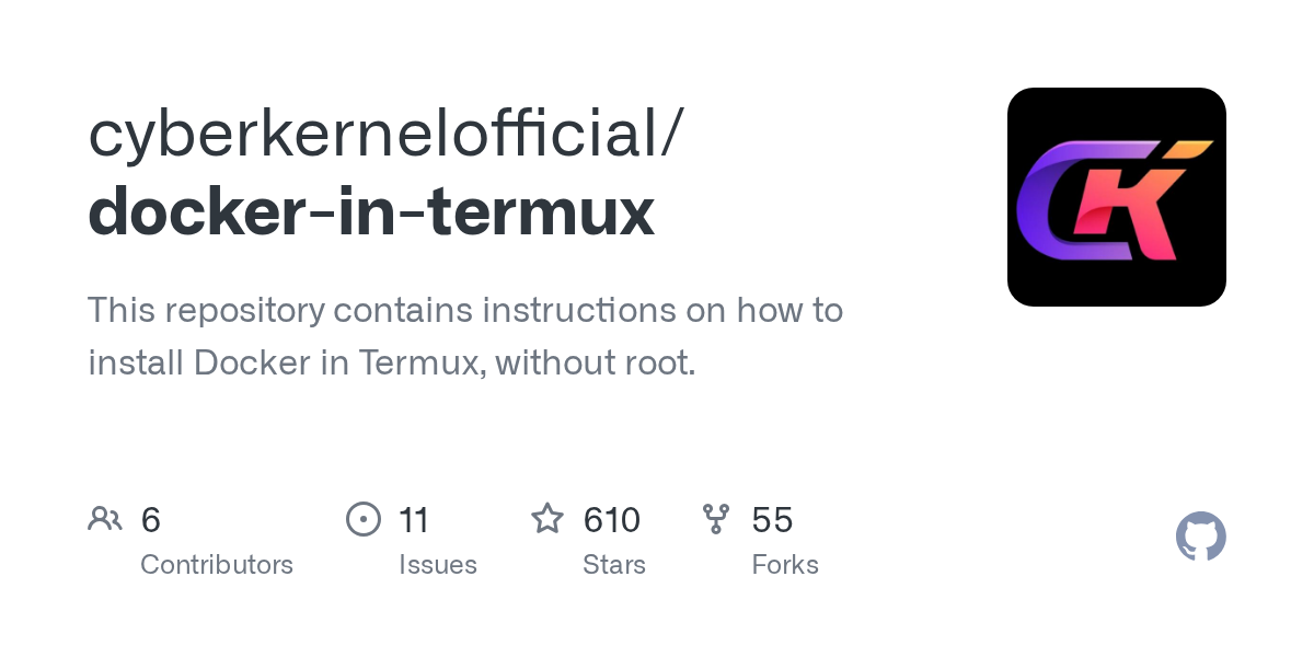 WhiteOakBayou@lemmy.world to Selfhosted@lemmy.worldEnglish · 4 months agoGitHub - cyberkernelofficial/docker-in-termux: This repository contains instructions on how to install Docker in Termux, without root.github.comexternal-linkmessage-square9linkfedilinkarrow-up188arrow-down11file-text