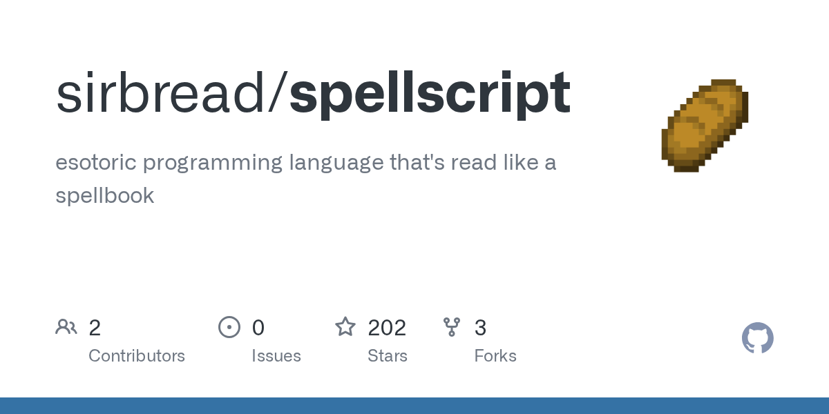 cm0002@lemdro.id to Programmer Humor@programming.devEnglish · 14 days agoSpellscript: esotoric programming language that's read like a spellbookgithub.comexternal-linkmessage-square7linkfedilinkarrow-up191arrow-down10
