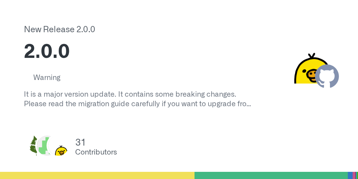 It is a major version update. It contains some breaking changes. Please read the migration guide carefully if you want to upgrade from v1 to v2.