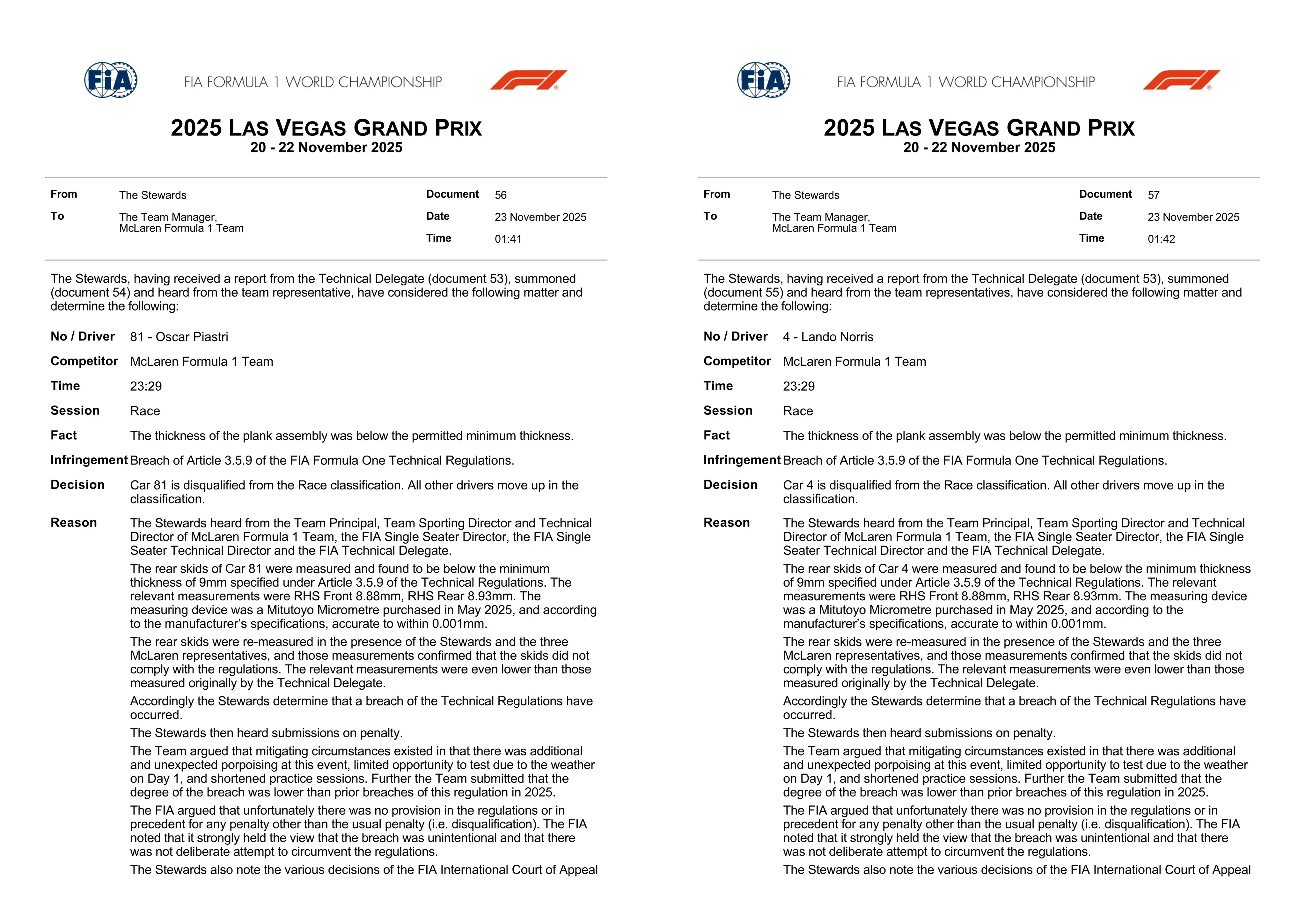 arrow-up1136arrow-down1imageBoth McLarens disqualified from Las Vegas Grand Prixlemmy.dbzer0.comHSR🏴☠️@lemmy.dbzer0.com to Formula 1@lemmy.worldEnglish · 6 days agomessage-square56linkfedilinkfile-text
