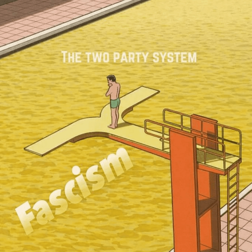 The facts are: Both parties support the imperialist empire. Both fund genocide, sanctions, coups, and proxy wars. Both uphold capitalism and the systematically broken policing system. Both expand surveillance and repression. “Voting blue” has never stopped any of this, it just puts a nicer face on it, the equivalent of sticking a smiling face sticker on the orphan crushing machine.