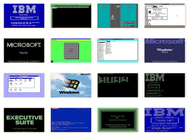 PCjs uses JavaScript to emulate a small collection of hardware and software that I grew up with in the 1970s and 1980s, allowing you to experience their slow CPUs, low-resolution displays, and primitive sound effects, all in the comfort and safety of your desktop or mobile web browser.