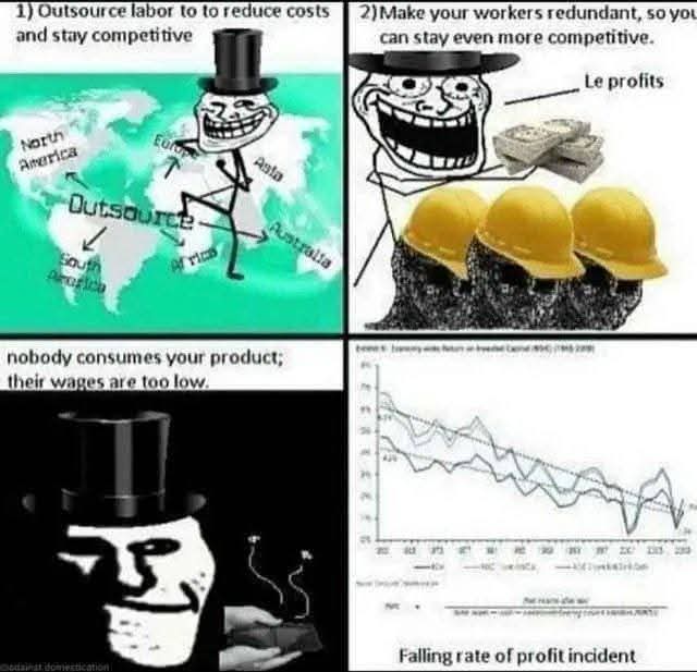 I believe that the “falling rate of profit” is actually a real phenomenon, but it is not only caused by workers not being able to afford stuff.
