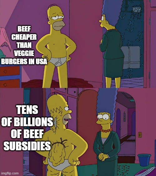 I realy don’t get why people eat those meat subsidies. They are realy not that good and unhealthy too. Cooking a meal just with vegetables and other stuff can taste realy good, is healthy and cheap at the same time.