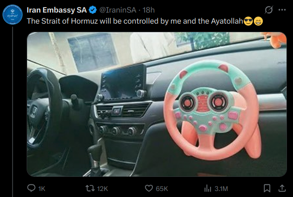 minus-squareArmand1@lemmy.worldlinkfedilinkarrow-up41arrow-down4·26 days agoLook, from the little I know about the Iran government I do not like them much. But this is really funny.