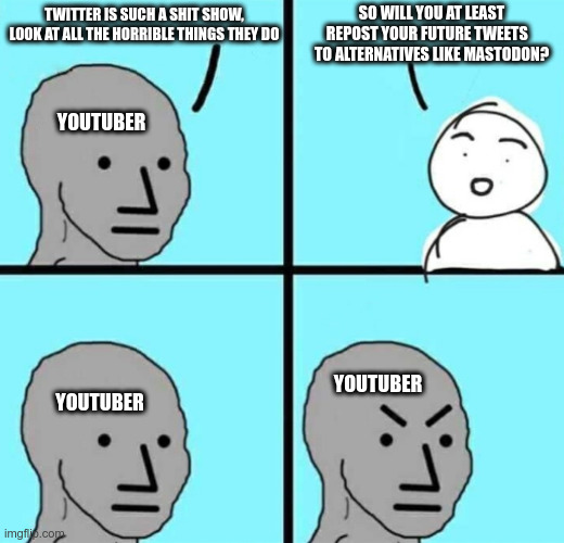 EfreetSK@lemmy.world to Memes@lemmy.mlEnglish · 2 years agoYoutubers and Twitterlemmy.worldimagemessage-square1linkfedilinkarrow-up11arrow-down10