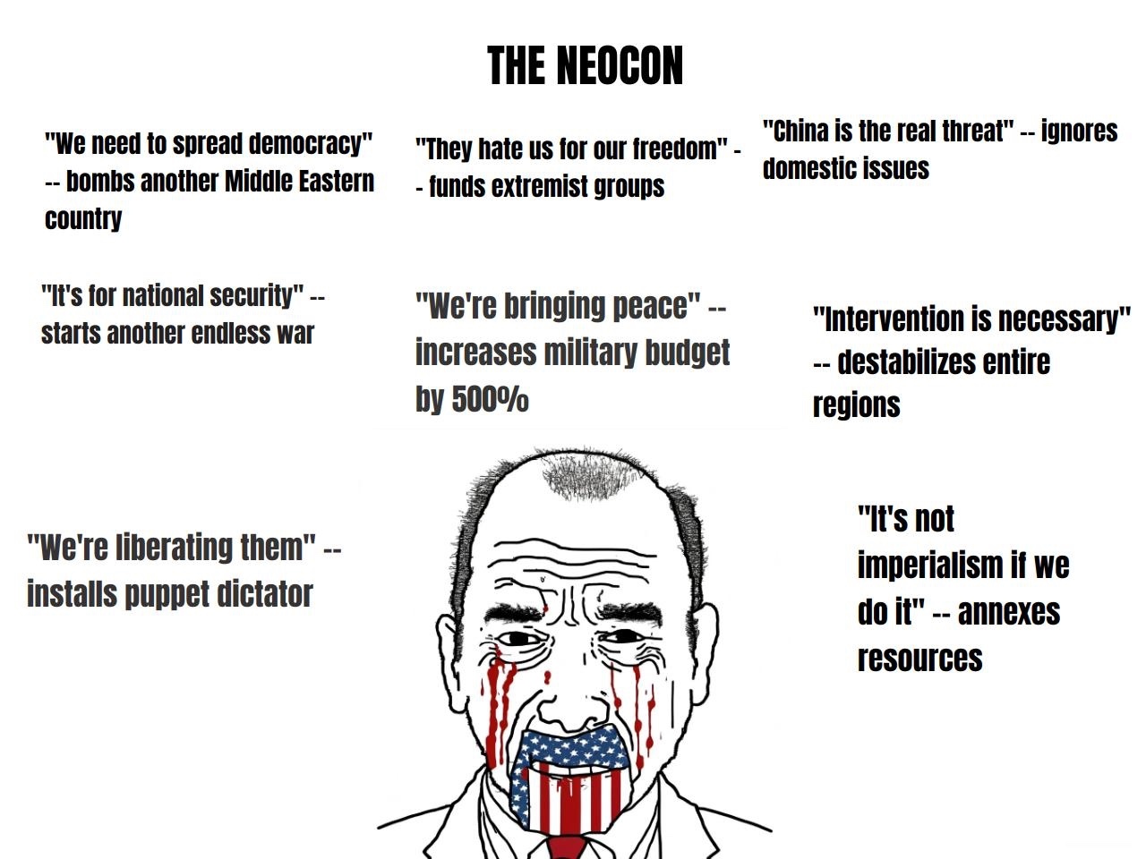 I remember the “They hate us for our freedom” line from the bush-era. I was still a kid at the time and I clearly remember asking my parents about it because it seemed like such a weird thing to say.