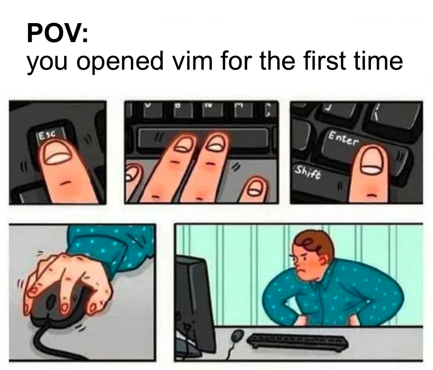 I’m not an old hat programmer and have never been forced to use VIM, but I started learning how to navigate because of the potential efficiencies that comes with it, and because I like to learn new things. I’m not good at it, but I’ve gotten a lot better, and I will continue to do so because it’s enjoyable, neovim is extremely customizable, and the vim key bindings can be used in vscode for when I use that. I also use Linux, so it felt like the right direction to go, but mostly for the memes.