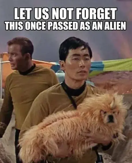Wait… waaait, wait wait! So you’re telling me that isn’t an alien?! Well, what do you think it is, a dog?! Hah! Yeah, right! Star Trek would never lie to me! Our relationship is built on Respect, on Trust!