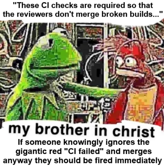 Would you look at that - the pipeline is green now! Quick everybody, merge your stuff while it’s stable (/s) (sadly a true story tho)