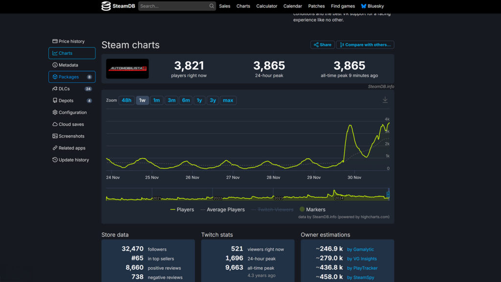 Reiza Studios’ Automobilista 2 has just hit its concurrent players peak on Steam, four years after release.